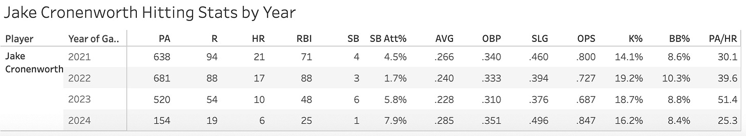 I did not see this coming from Cronenworth at the age of 30, so it’s possible it’s a total mirage and he’ll go back to his former self. But I can’t ignore it for now.
