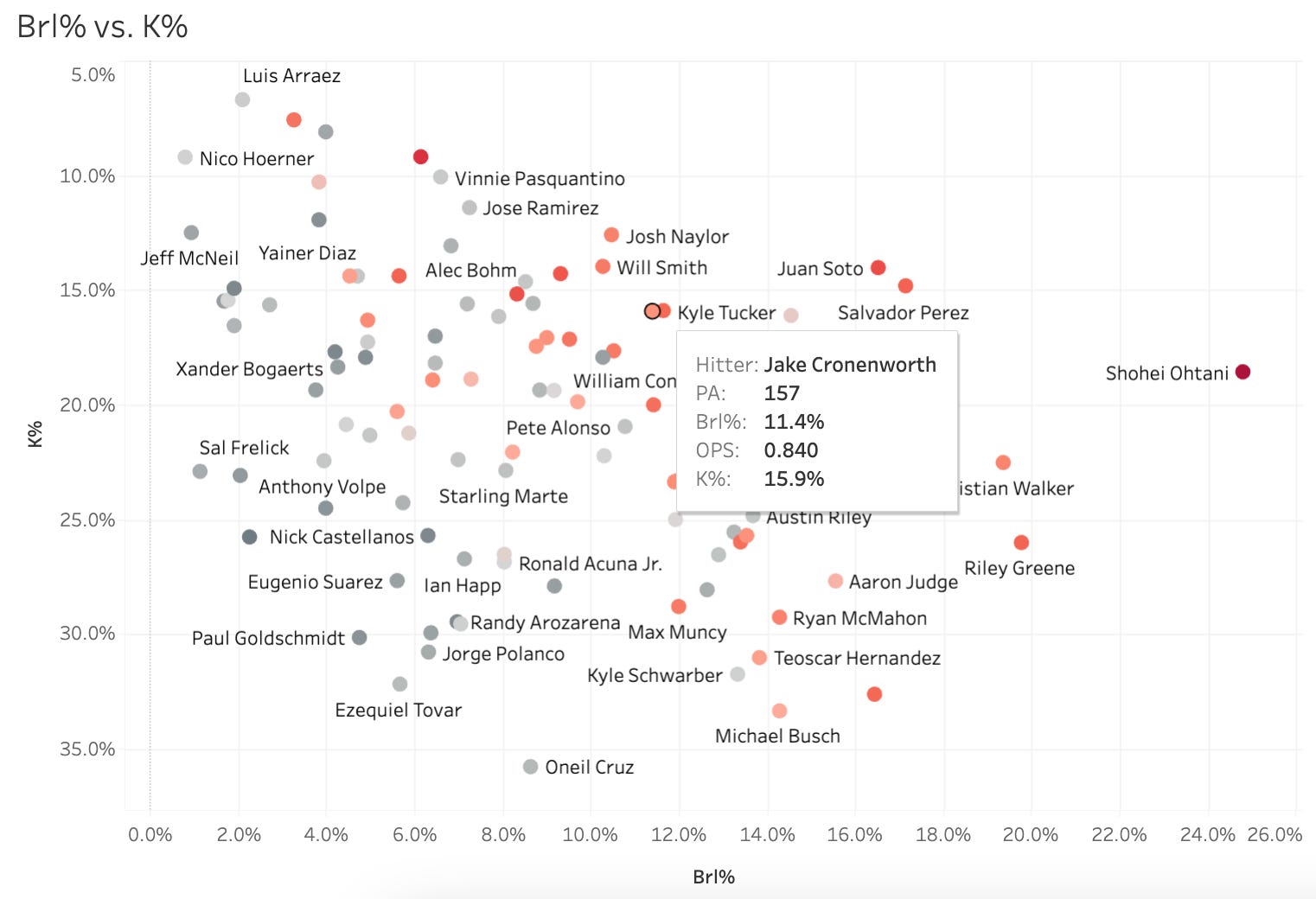 Only 14 hitters this so far this year have a Brl% above 10% and a K% below 20%, Cronenworth being one of them at 11.4% and 15.9%.