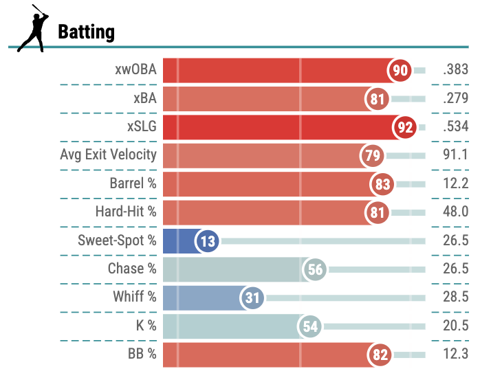 Season: .266/.391/.548, 25.8% K%, 16.6% BB%, 9 HR