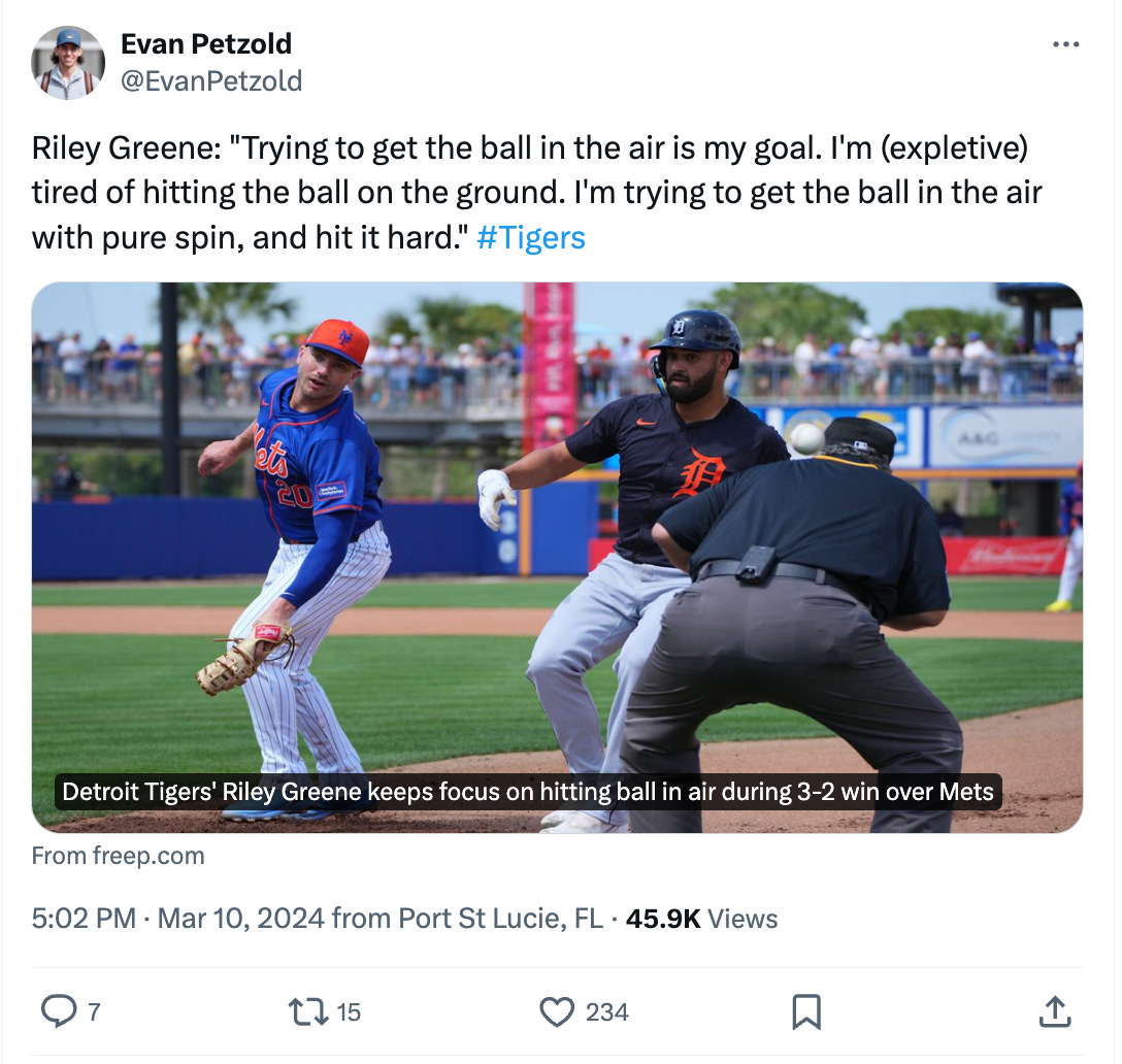 His 11.3% Brl/PA is sixth-best in the league and his 19.8% Brl% is second-best. That plus the manageable 26% K% (72% Contact backs that up) means Greene is almost certainly a top-20 power hitter in the league, and obviously that should be owned in all fantasy leagues everywhere.