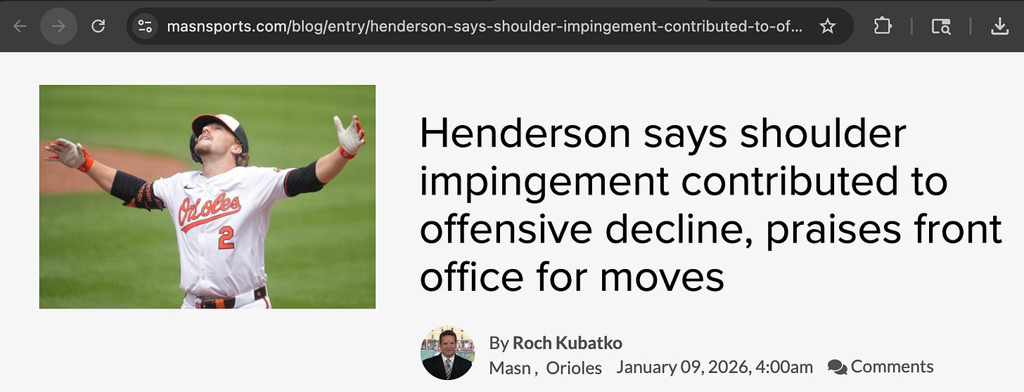 Same goes for Gunnar Henderson. It came out that he was playing through a bad shoulder for most of the year: