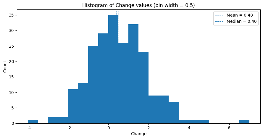 Here’s a histogram of the deltas. If you don’t know what that means or what you’re looking at, you’ll be fine.
