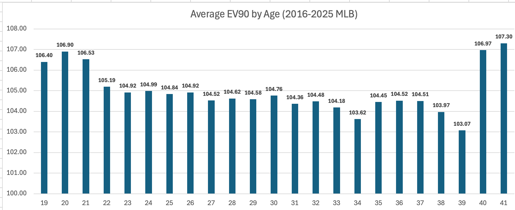 We have outliers on the ends. The old guys were David Ortiz, Nelson Cruz, and Carlos Beltran. The 19-20 year olds that qualified were Acuna, Vlad, Soto, and Chourio. So you have freak-of-nature type outliers there that you really shouldn’t count.