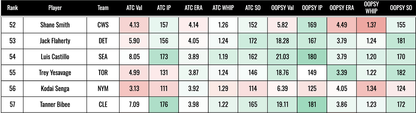 Analysis on SPs #52-#80 from the MLB DW SP ranks for 2026