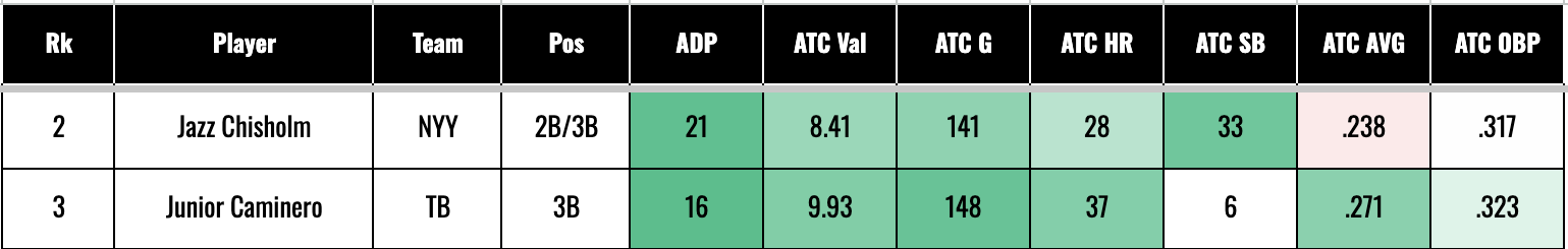 I don’t want to downplay these two guys too much. They both returned round one kind of stuff last year, and they’re young (Jazz is 28, Caminero is just 22). But you can see that they do pull up well shy of what J-Ram gives you.