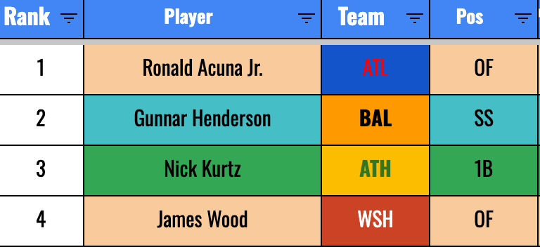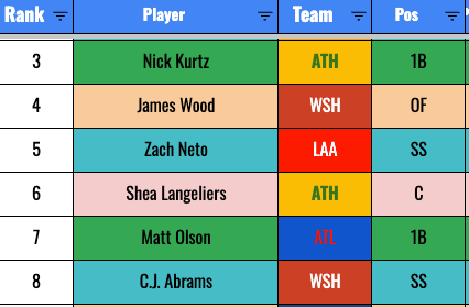 Gunnar is really the only competition at this point in the ranking process, and it’s not too close. I’ll take my chances on Acuna.