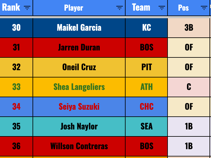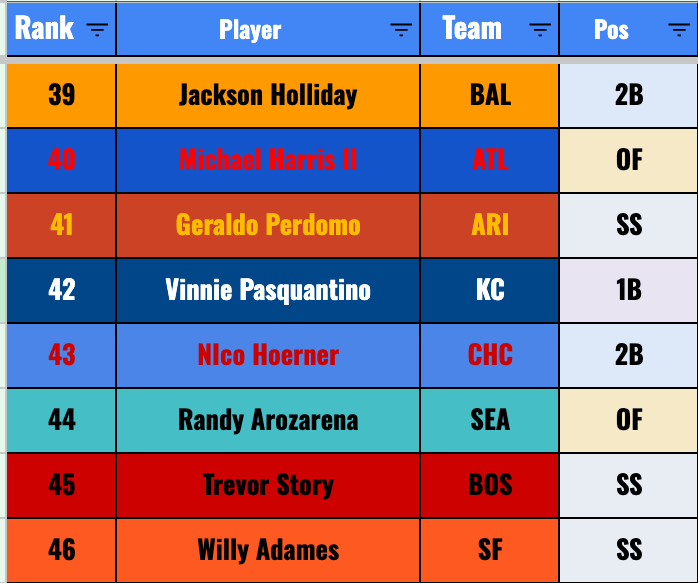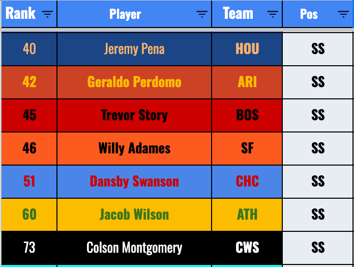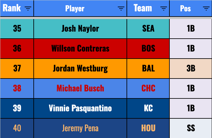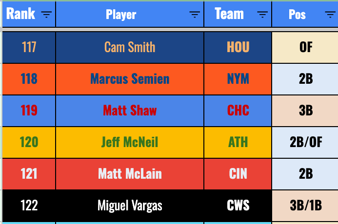 But I feel less good about him as compared to Cam Smith, at least in terms of him being a legit MLB hitter. The good news is that Shaw has speed, and he should be in there daily at third base. So you can feel confident in getting 20+ steals, assuming he does stay in the Major League lineup (which I suppose is no guarantee).