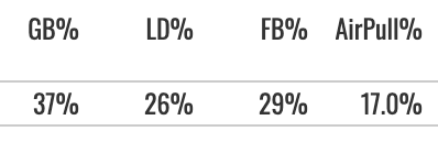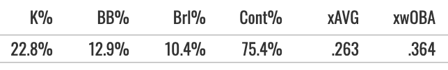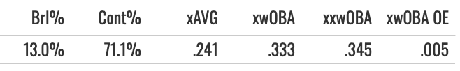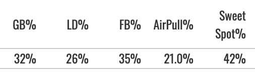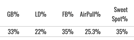 But he hit some line drives and pulled the ball pretty well (19% air pull%) while making a good amount of contact (83.4% Zone Contact%).