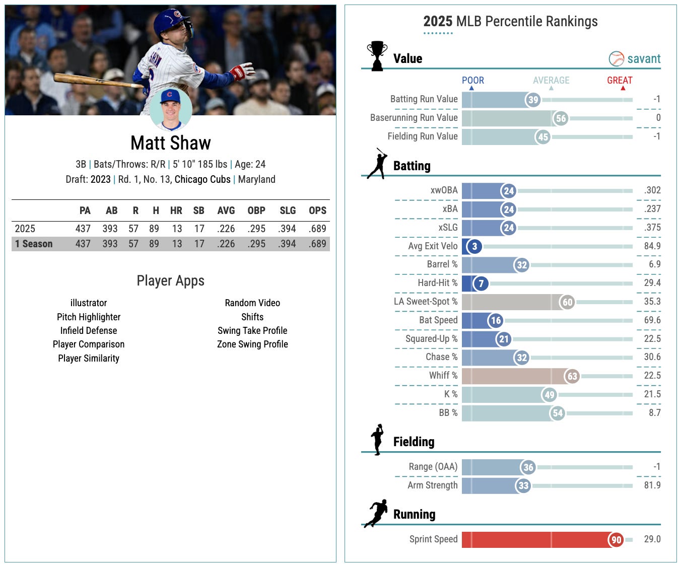 Good news on that front! His .286 xBA was 98th percentile, and his sprint speed is 82nd percentile.