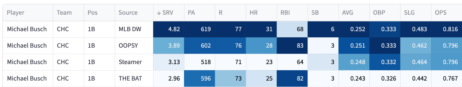 He’s a fine player, I’m just not enthralled with him since the Cubs lineup probably isn’t going to be very good. The lack of steals now and about a .250 batting average projection make him more “fine” than someone I want to get on my team.