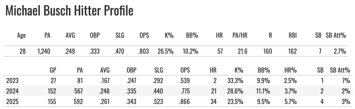 Busch was stuck in the Dodgers system for a while. He got moved to the Cubs in a trade a couple of years ago, and he didn’t do much until about midway through last year when he broke out in a big way.