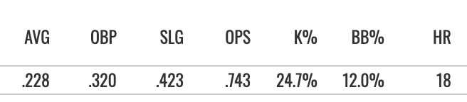685 PA, 67 R, 25 HR, 69 RBI, 15 SB, .249/.311/.425