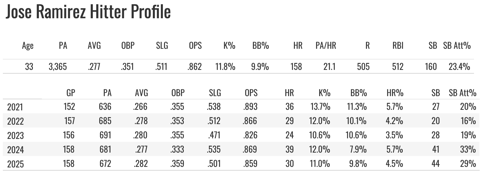 Everything got even better last year compared to 2024. The EV90 is down from the heights of his career, but he’s never been a heavy EV guy. He gets him home runs with air pulls and a volume of balls put into play. J-Ram is one of the best in the game at just knowing what to do with the baseball bat.
