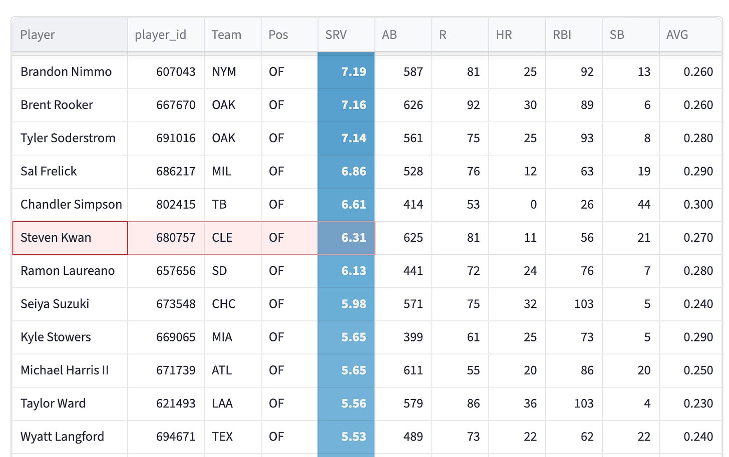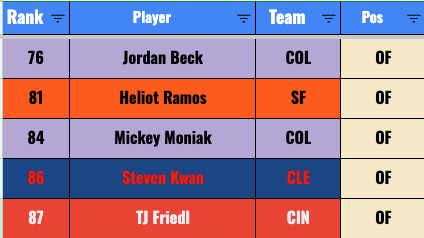 The Guardians' lineup is looking pretty rough at this point, so that brings down his run-scoring projection. And if Kawn is only going to score 70 runs or something, that’s a big deal for him. He’ll hurt you in homers and not provide an overwhelming number of steals. So you’re really, really relying on the batting average being very good and the guy scoring a bunch of runs.