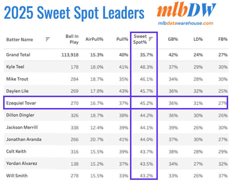 But he started lifting the ball like he hadn’t been able to in years prior. His sweet spot rate spiked to an elite mark of 45.2%, the fourth-best in the league.