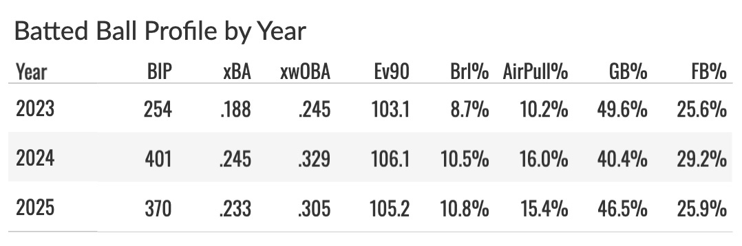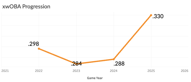 He had posted xwOBA values below .300 in each of his first three seasons. That popped way up to .330 in 2025.