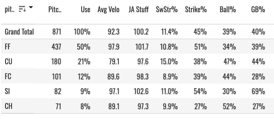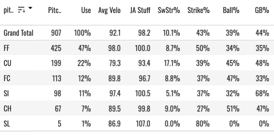There’s some hope, I think. His fastball has a ton of life, and the curveball has shown some potential with the 16.1% SwStr%. He’ll be a real modern-day Coors Field test. He has to be the most talented arm the Rockies have had in the Statcast era, right? So can they figure something out with him? Could you he maybe a 150 strikeout guy to get some streamer interest? Some 15-team points league value? We’ll see. If I were the Rockies, I’d give the kid every chance I can next year. And then if it tanks again, try to trade him to a sharp organization for a nice hitter prospect package.