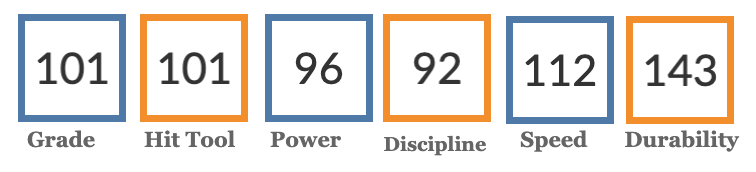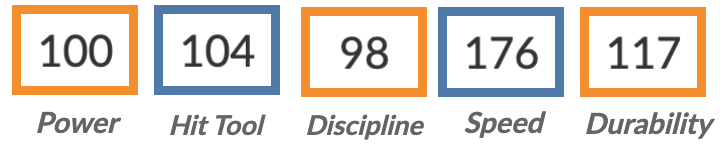 Good speed, nothing awful, and overall about a league-average player. His first season as a full-time big leaguer looked like this: