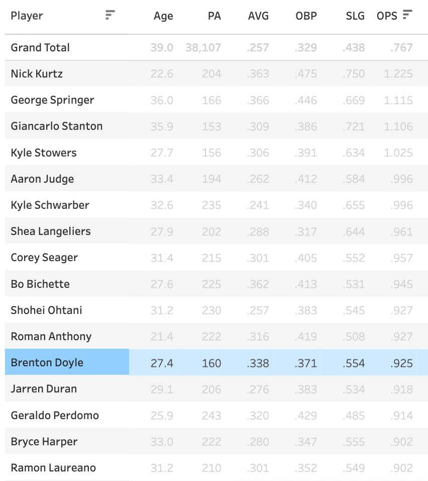 All great numbers. So he gets called up to the Majors early on in 2025 and proceeds to do this: