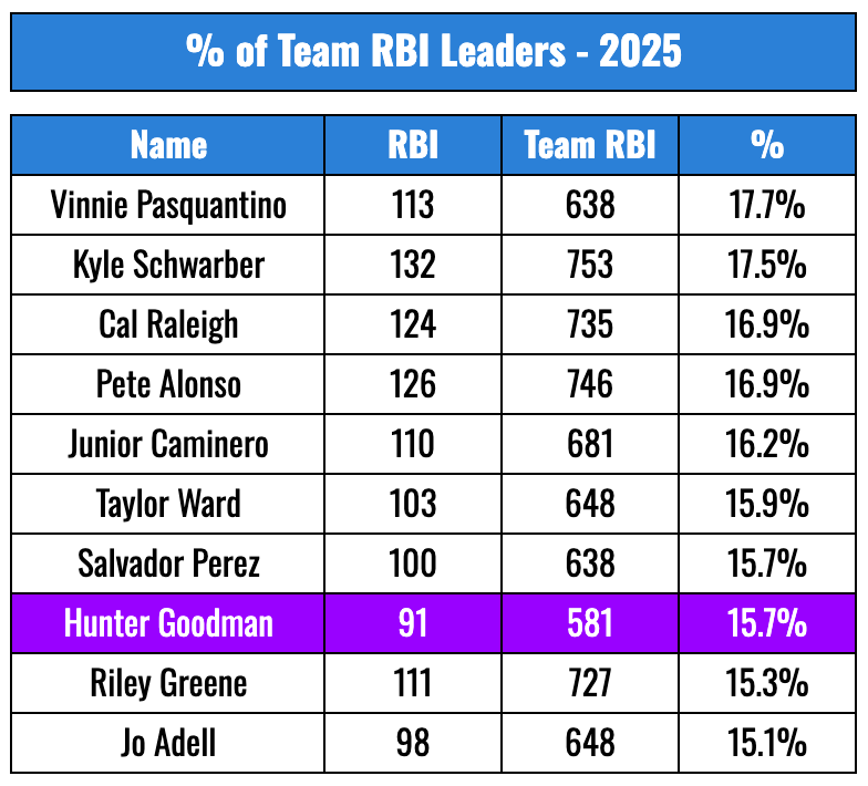 You even saw above in the home/road splits table that Goodman was slightly better on the road than at home. Eighteen of his 31 homers came on the road.