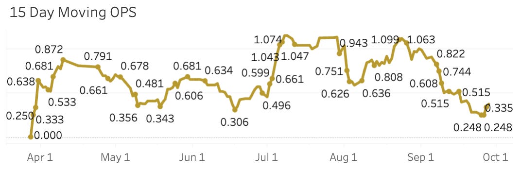 But then he sputtered to the finish line with a .473 OPS in September.