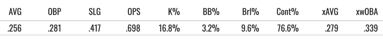 But you see the xBA there. It came up to a career-high, but it was just still under .270. So the .300 batting average seems to be the result of some good fortune.