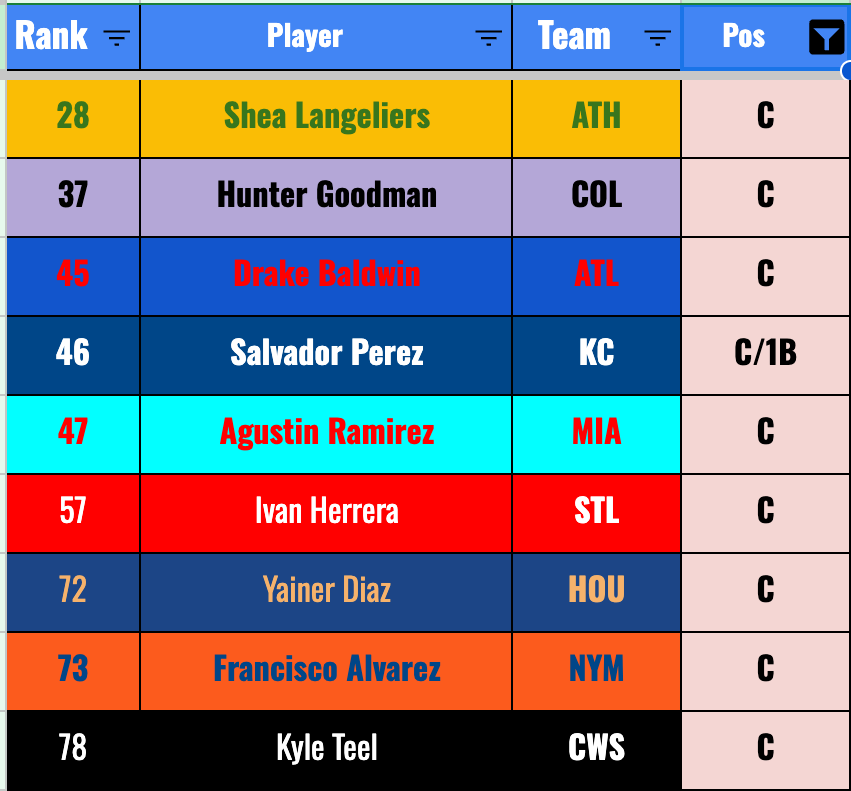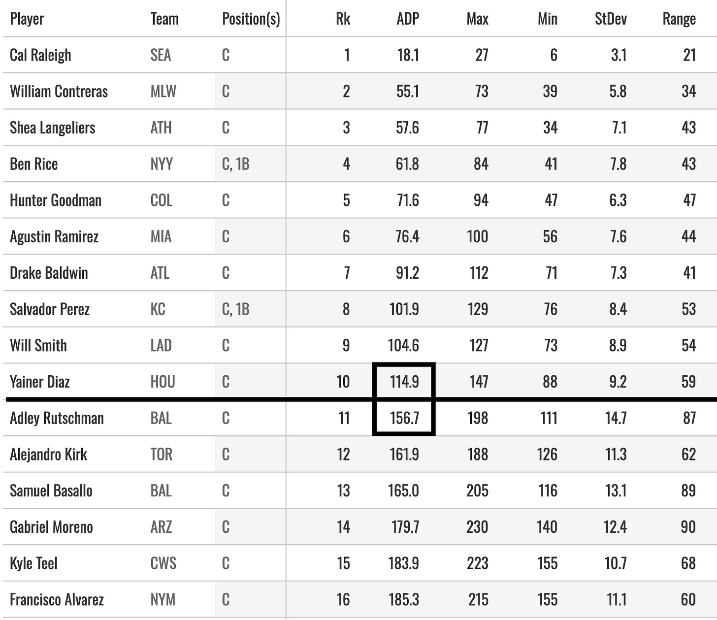 There is a clear top ten at the catcher position. He rounds out that ten. There’s a big gap from him down to Adley if you’re looking at NFBC ADP.