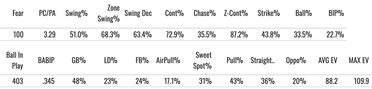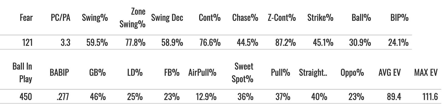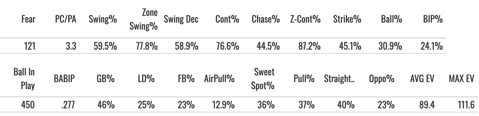 The FEAR SCORE is high at 121, but that’s because pitchers know they don’t have to pitch to him: