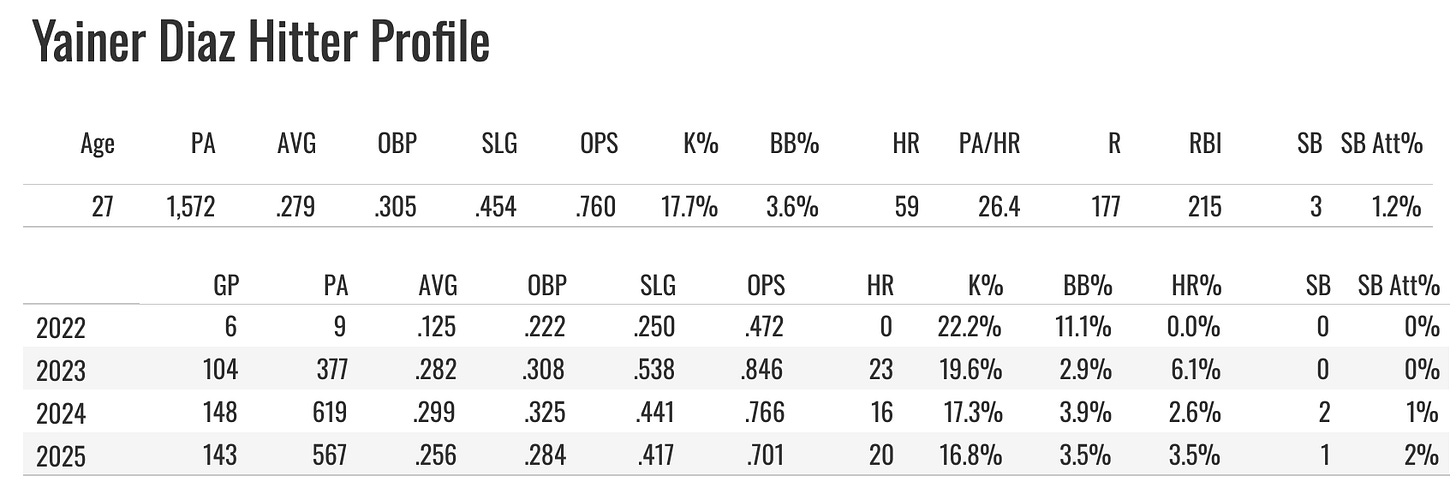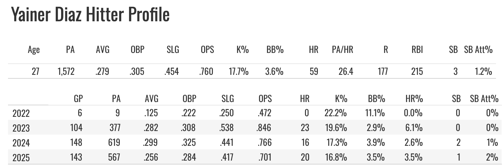 The Astros are heading in the wrong direction, and Yainer contributed to that decline in 2025. It was the worst work of his brief career at the plate. His batting average (his best fantasy skill prior to last year) fell from .299 to .256.