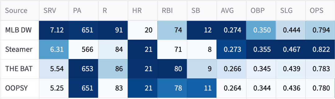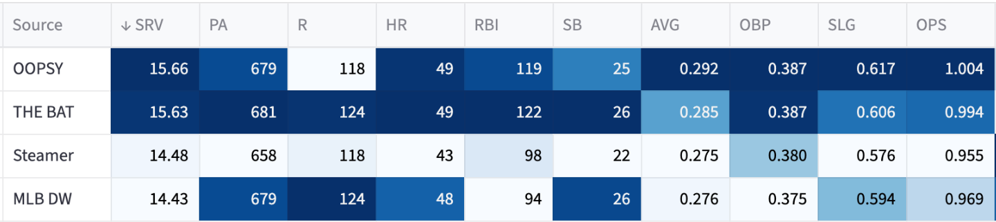 The projections are all between 25 and 30 homers with 18-24 steals and a .270ish batting average. You’re usually getting some kind of absurd upside in something with these top 15 hitter picks, and I guess you don’t have that with Tucker. What you do have is across-the-board reliability, and with massive RBI potential this year in particular.