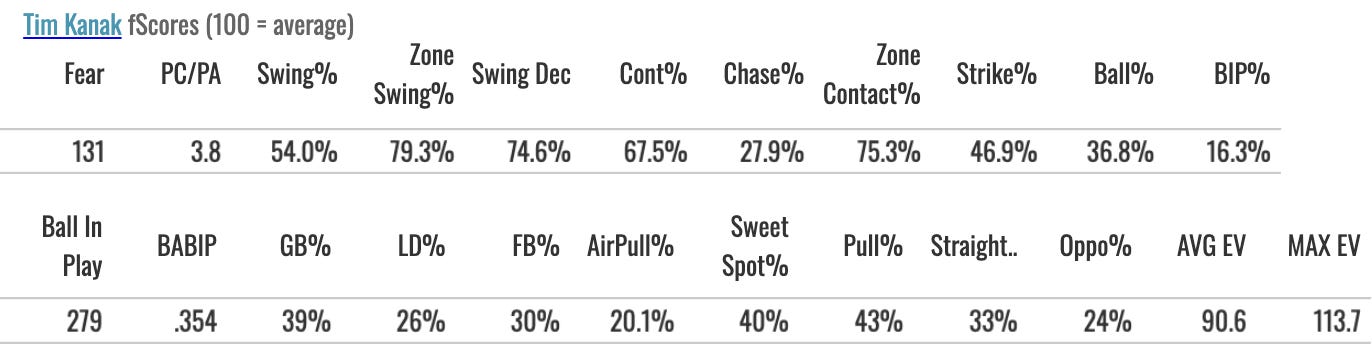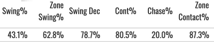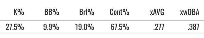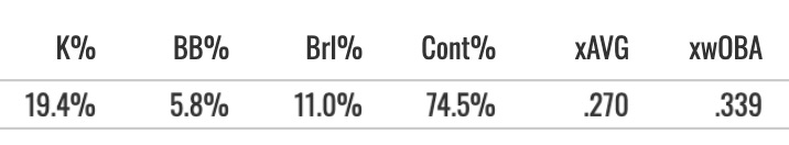His 91.8% Zone Contact% gets him to at least a .270 batting average, I’d say. You have to be really bad with the launch angles and/or very unlucky to not hit for a good batting average while making that kind of contact.