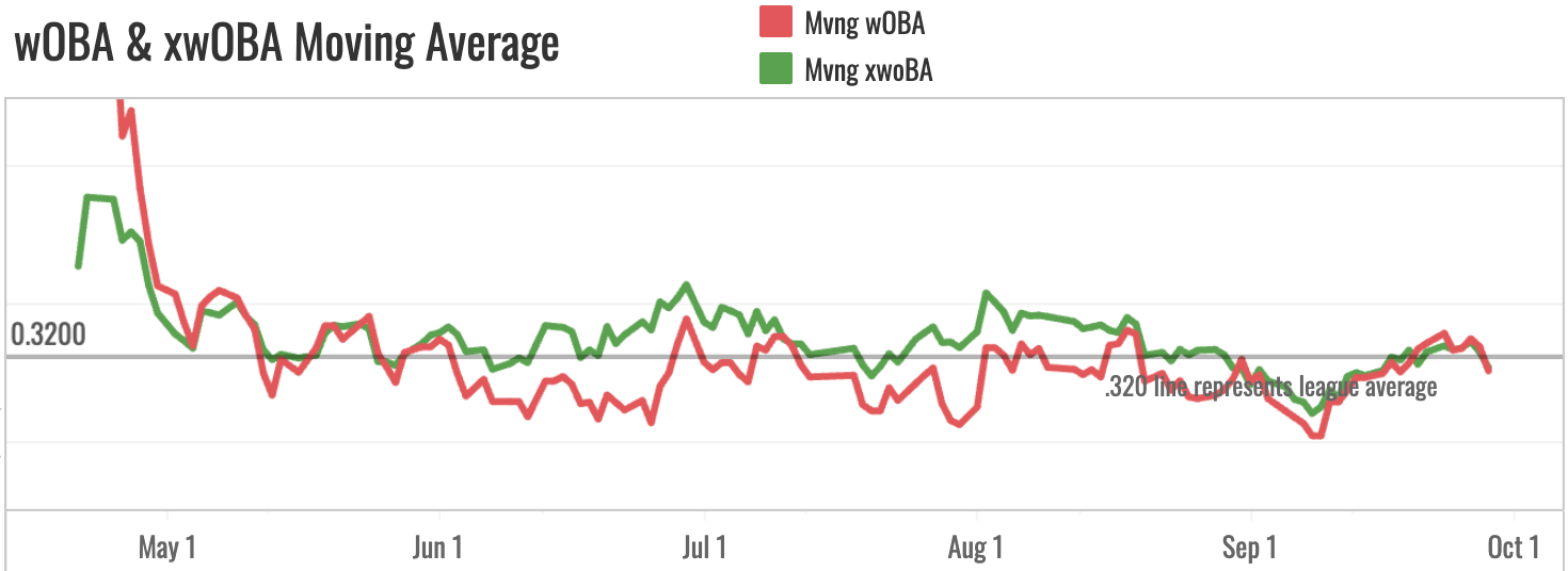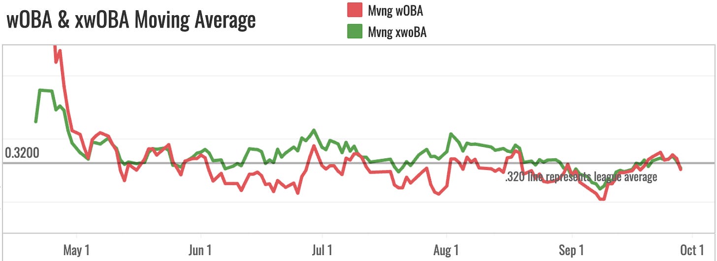 A lot of people will see the .279 xBA and .352 xwOBA and then not worry at all about the .357 BABIP. I’m not sure that’s right. xBA is subject to small sample problems just like anything else. Just because this guy hit a high number of line drives and balls in the proper angle range in his first 162 balls in play doesn’t mean that’s guaranteed to happen next year. The guy’s .239 career minor league batting average certainly tells you something about that. He hit .246 in the minors last year and then .292 in the Majors.