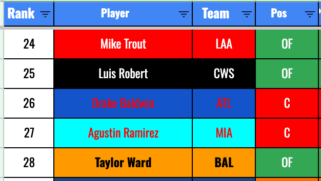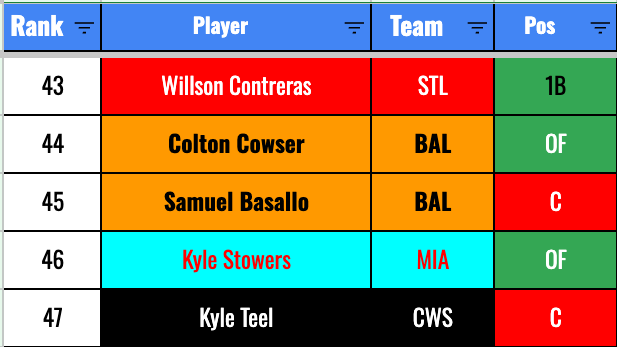 But the downside is that the batting average stays very low, the homers come in around 20, and he steals only a handful of bases. That kind of season would be pretty replaceable. But overall, I’m PRO Agustin. This upside is that he separates from the field at the position (besides Raleigh, I suppose).
