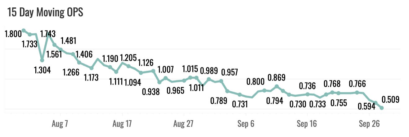 He was immediately the Marlins’ best hitter upon joining the lineup, but it was a steady downtrend from the beginning. The guy had a 1.058 OPS in August and then a .619 mark in September.