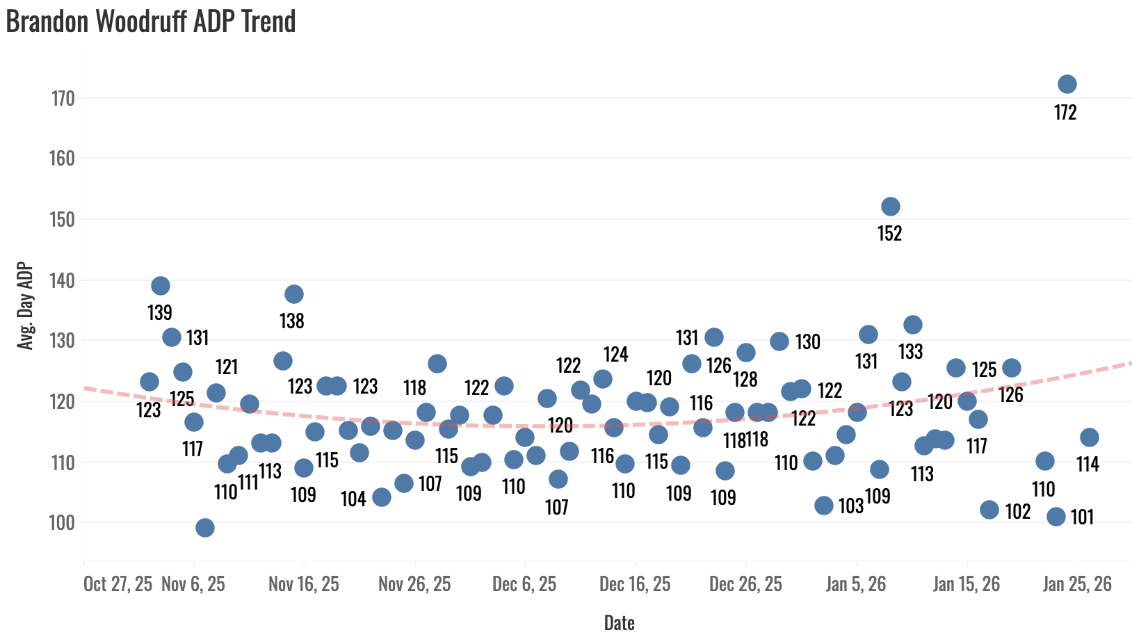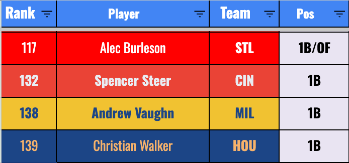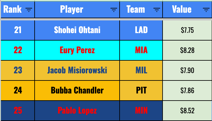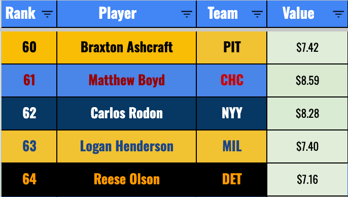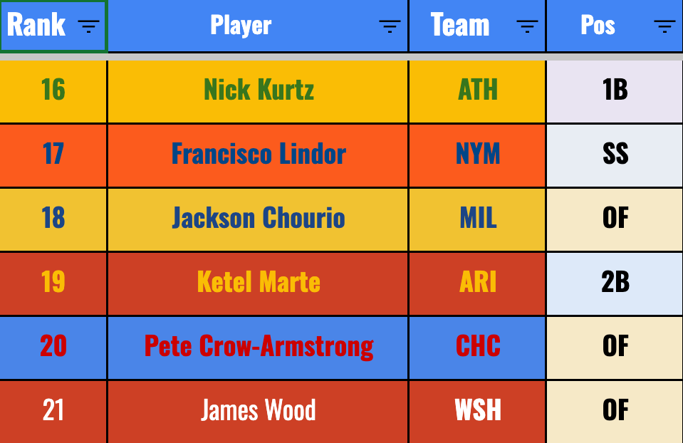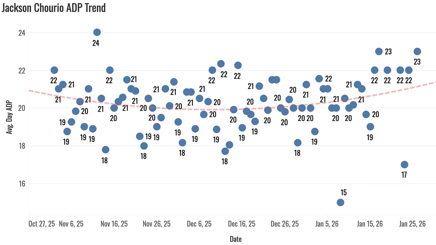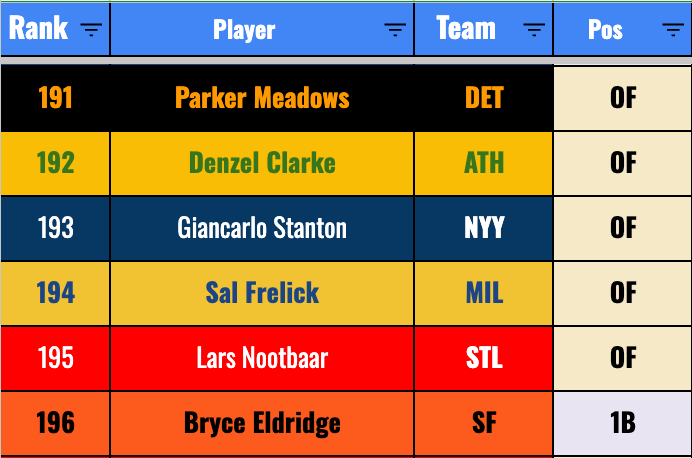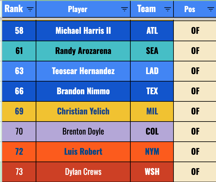 We’re really banking on improvement from Chourio if we’re getting to this price. He’s a mid-second rounder right now. The 20-20-.270 he’s given you so far isn’t too far off from that valuation, but it’s not a smash pick in the second round by any means.