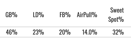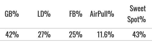 That’s not what we see, though! More barrels, yes, but another super high GB% and a really low air pull rate.