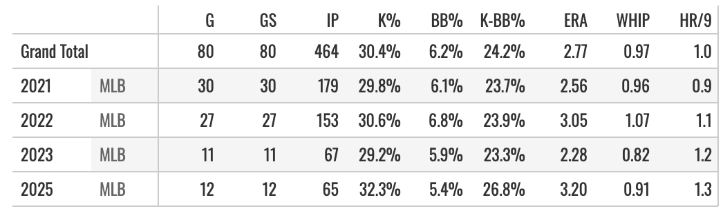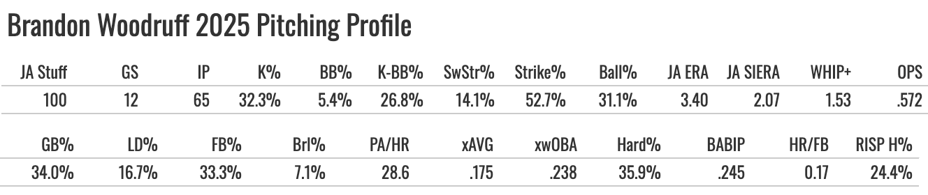 We got Woody back late last year, but we didn’t see him in the postseason as he finished the year with a lat strain. He had major shoulder surgery in 2023. That cost him the 2024 season and a good portion of 2025 as well. They took it very slow with his rehab, so he made just a dozen MLB starts last year.