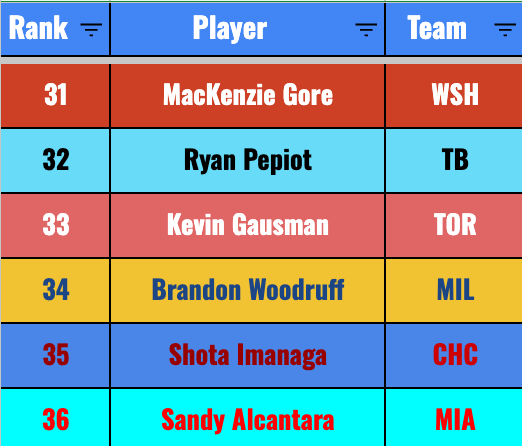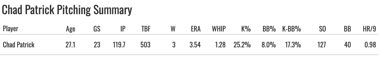 But the lack of true breaking balls or offspeed pitches is probably a bad thing for him, and he has significantly less velo than Rasmussen, which matters quite a bit. I think Patrick can be serviceable, but he’s not a breakout threat in the sense that he could be a true difference-maker in fantasy.