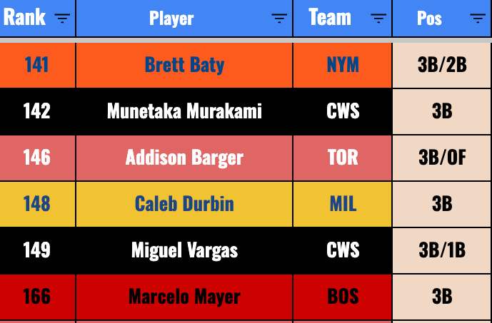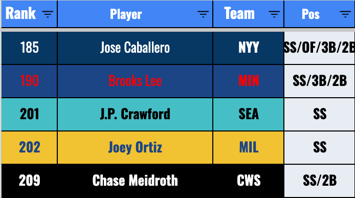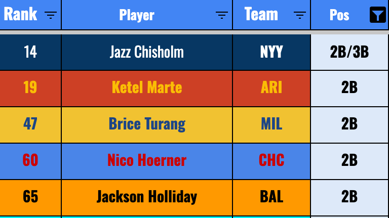 It’s a really weak 2B position, and Turang has a path to a 15-homer, 30-steal, .280-average season, and that would put him in the top tier almost surely. But doesn’t the worst case scenario feel like eight homers, 20 steals, and a .265 average? That would be pretty rough.
