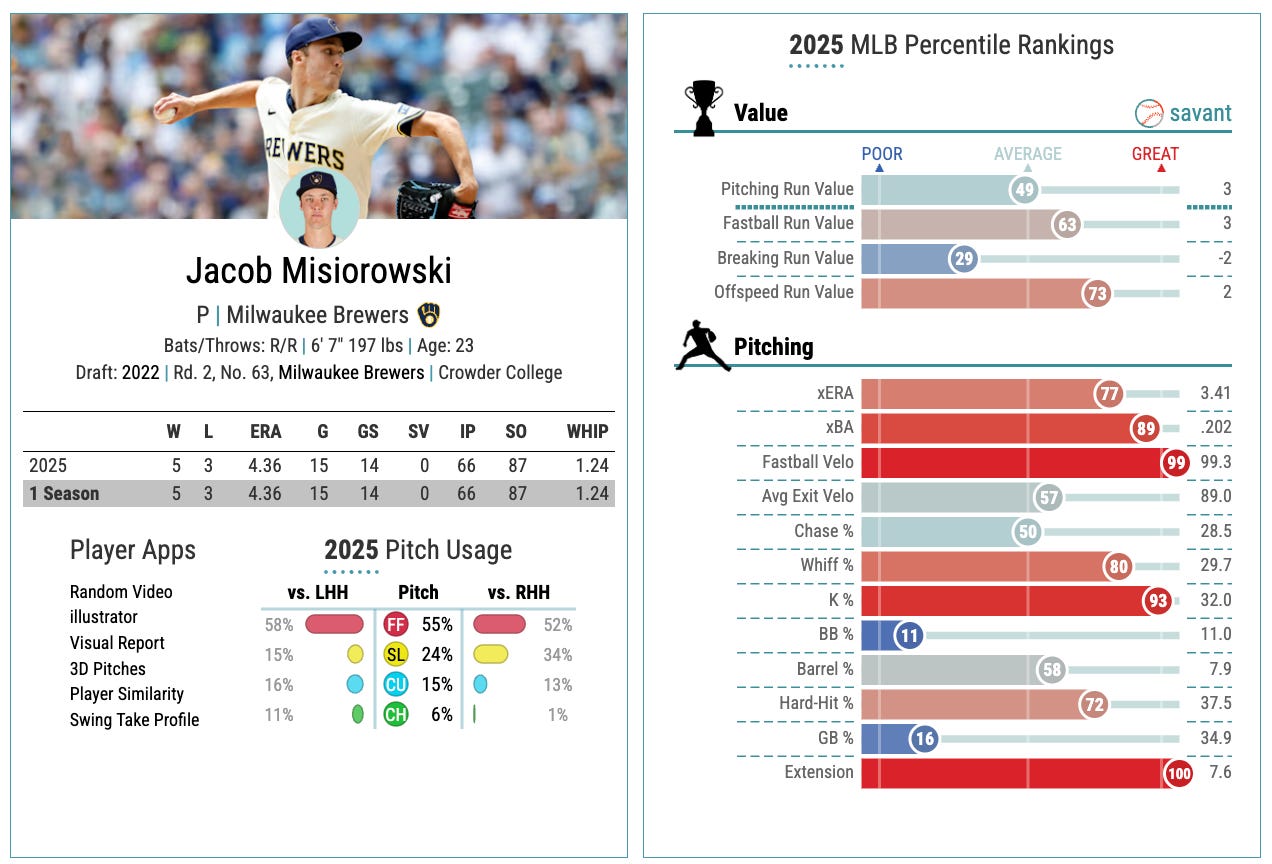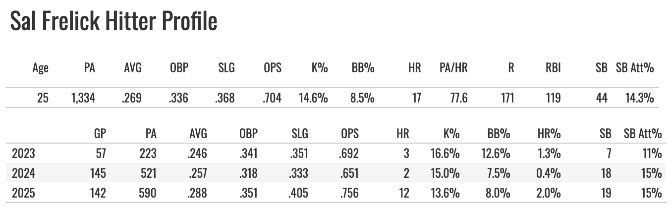 It’s all pretty bad news for Frelieck. But the Brewers, more than almost any other franchise, do seem to have this ability to maximize talent. They squeeze every bit of production they can get from these “flawed” player types. Maybe that can happen again with Frelick, but I don’t thin I’m buying into this profile for 2026.