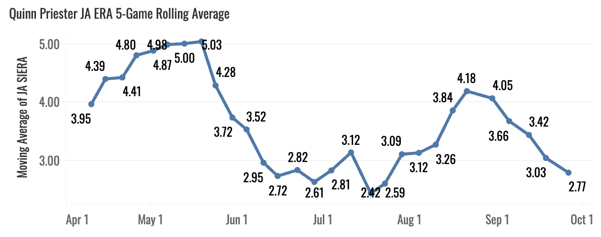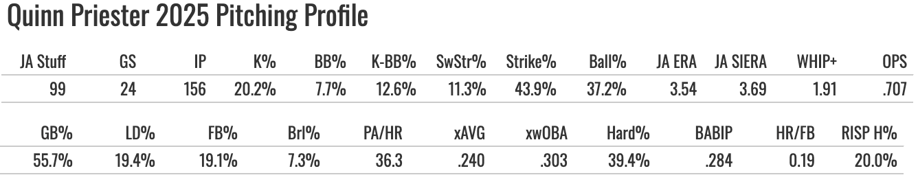 Priester joined Milwaukee, his third pro team, and they worked their magic on him. He’s a real piece of this rotation now after having a breakout 2025 season.