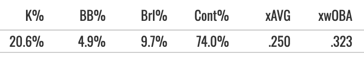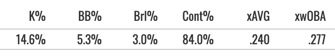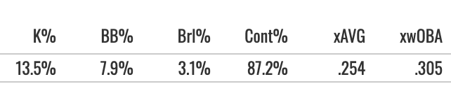 But the Zone Contact was above 86%, and he hit a bunch of line drives while getting the FB EV90 above 105.