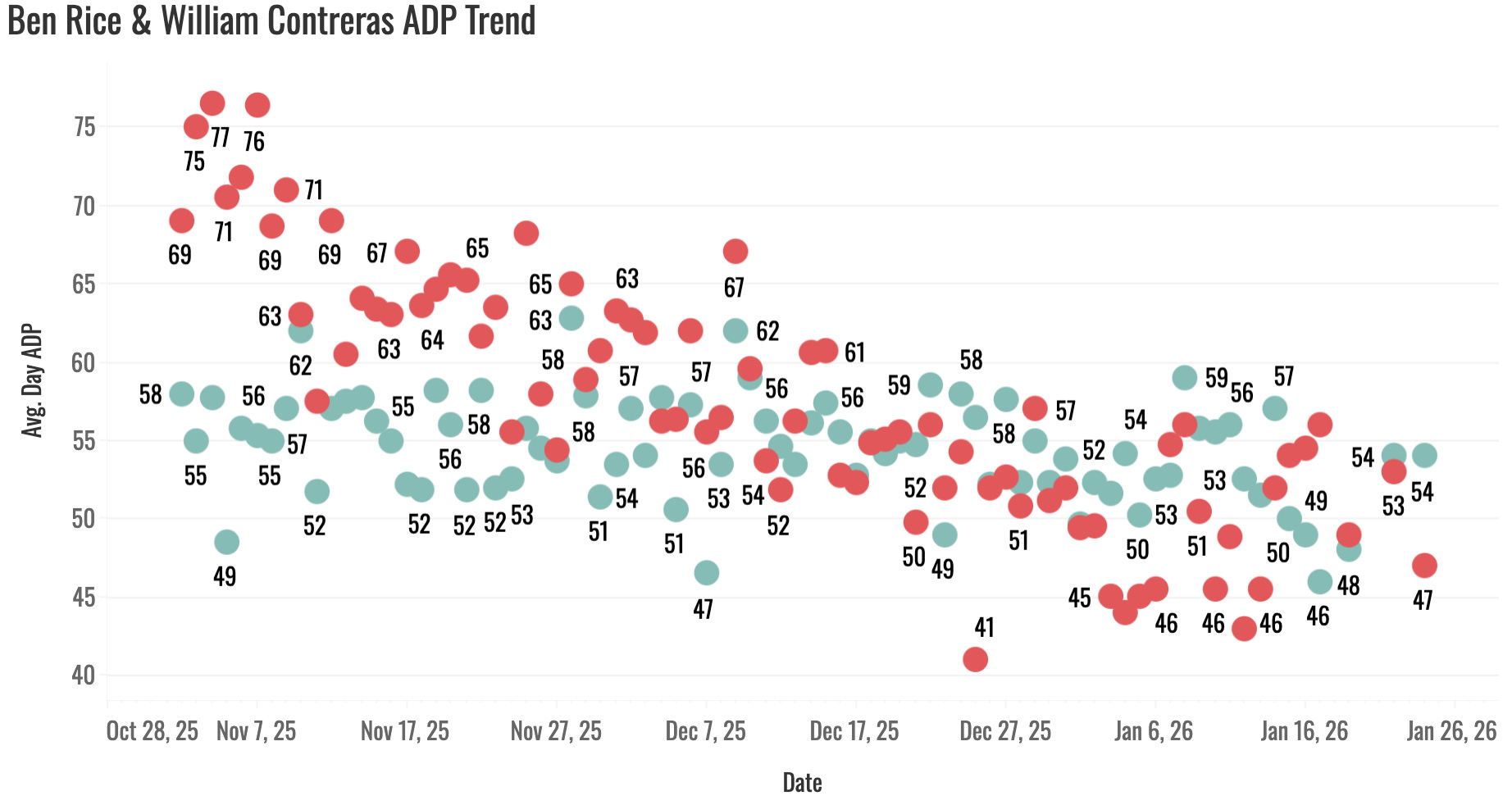 The bad news aside, the floor is very nice for Contreras. He plays more than pretty much any other catcher and gives you a nice batting average floor. It’s tough to get that at the catcher position, but yeah, Contreras was very obviously overpriced last year.