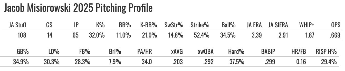 But the command needs to be cleaned up, and he does need to improve the secondaries. A 9.5% SwStr% on the slider is discouraging, but it was good to see a high 47% Strike% on it. The ball rates were good on every pitch. So there’s some hope for a 9-10% BB% in 2026. If that happens, he’ll be pretty studly.