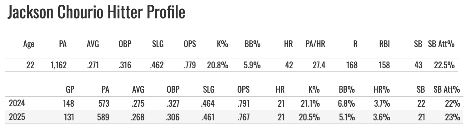 We’ll be talking about Chourio for a long time. He’s entering his third season and won’t turn 22 until March. He was one of the few names to make it to the Major Leagues as a teenager. And he’s had two pretty similar seasons so far: