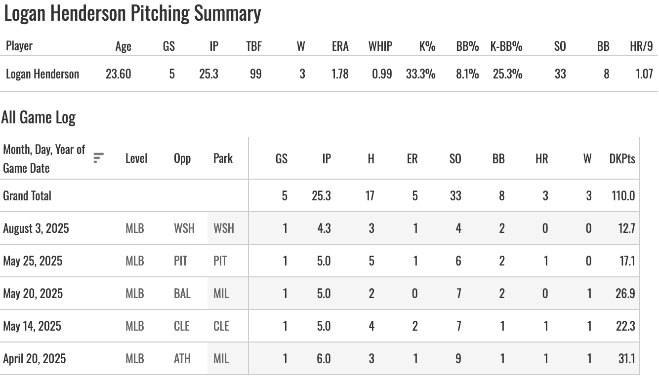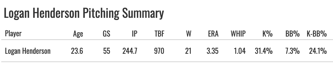 The Brewers didn’t want Henderson in the bigs last year. It was one of the weirder things we saw. He got the call-up to make a spot start on April 20th, and he struck out nine Athletics in six brilliant innings. And then he was sent back down. And okay, fine, that was their plan and they weren’t going to let one start change it. But he got back up in May and made three more starts with a nice 20:5 K:BB and three runs allowed in 15 innings. But then, right back to the minors.