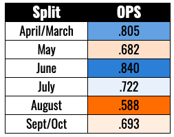 We’ve found something here! The career OPS by month: