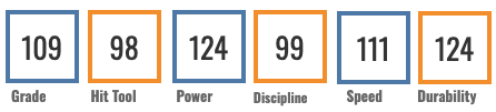 → 65 G, .304/.353/.519, 13 HR, 0 SB