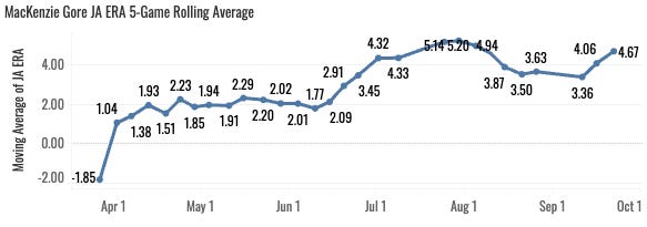 Early on in this series while we’re reviewing all these bad teams, we get a bunch of really difficult-to-rank starting pitchers. And Gore is very difficult to rank!