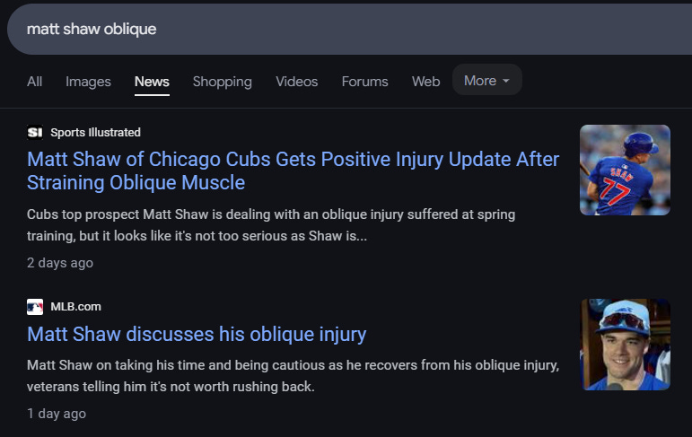 This morning, it also came out that the Cubs are about to sign Justin Turner. Turner played just six games at third last year. He should be viewed as a first baseman, but the timing is certainly interesting. Could this have been a security move just in case Shaw is obliqued out of the lineup?